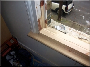 Skilfully built complete sill and sides and the same window after sanding and painting |